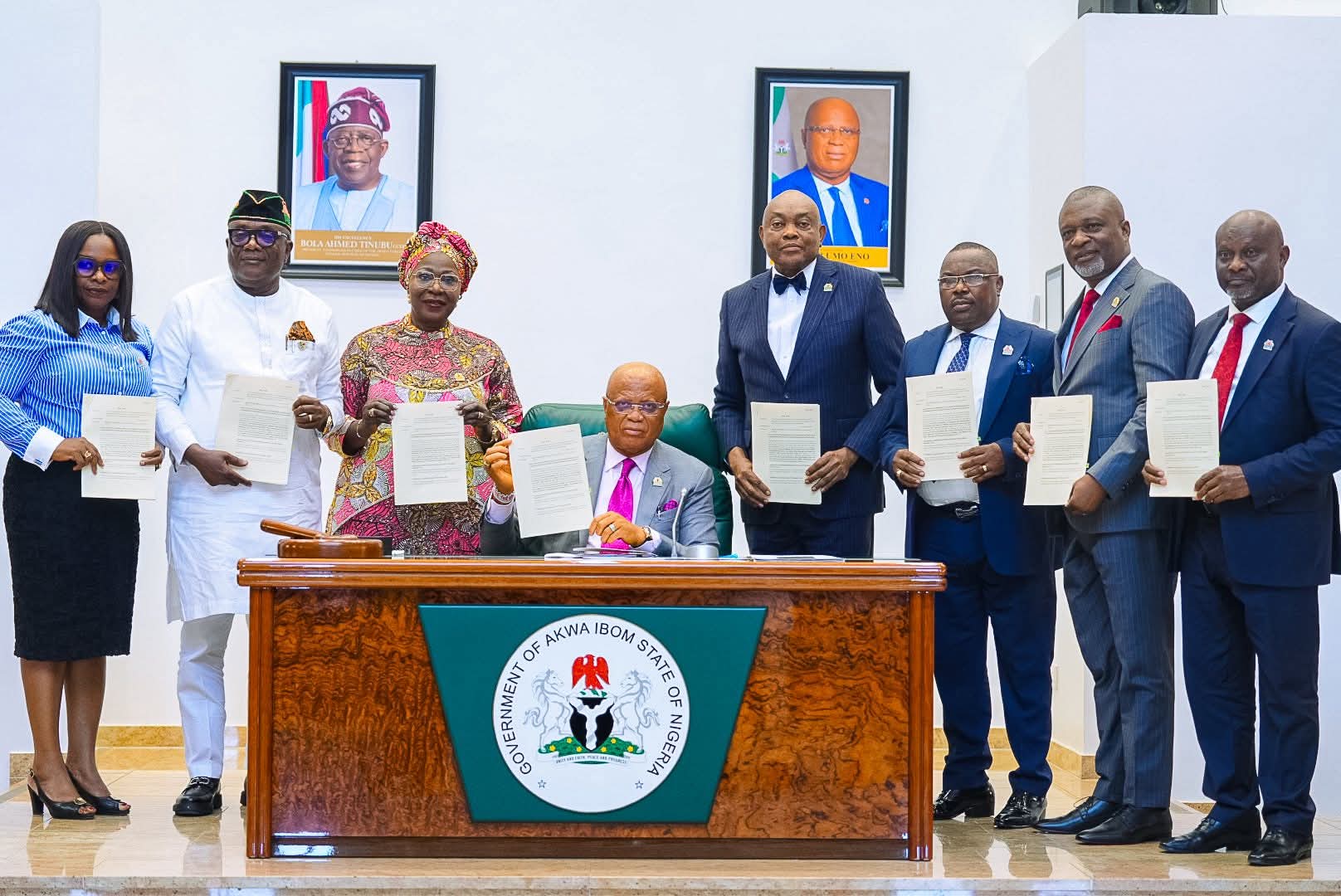 Akwa Ibom State Governor, Umo Eno, has signed into law the N1.585 trillion 2026 People’s Budget of Expansion and Growth.