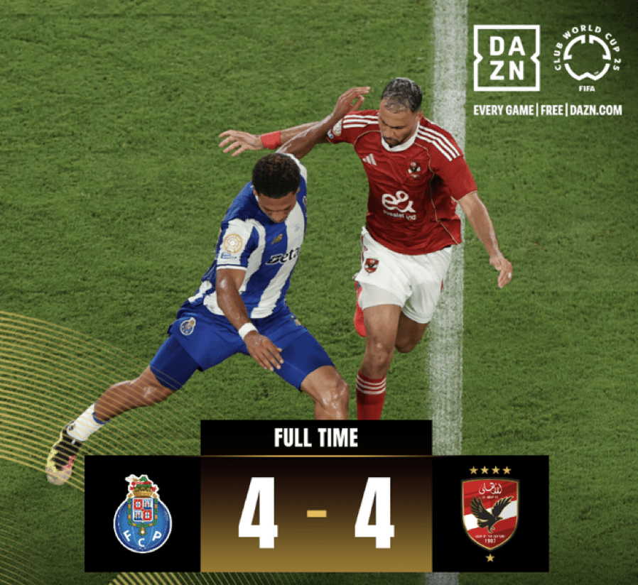 A stunning eight-goal thriller at the MetLife Stadium in New Jersey saw FC Porto and Al Ahly FC share the spoils in a thrilling 4-4 draw, but the point wasn’t enough as the former African champions exited the FIFA Club World Cup in the United States.