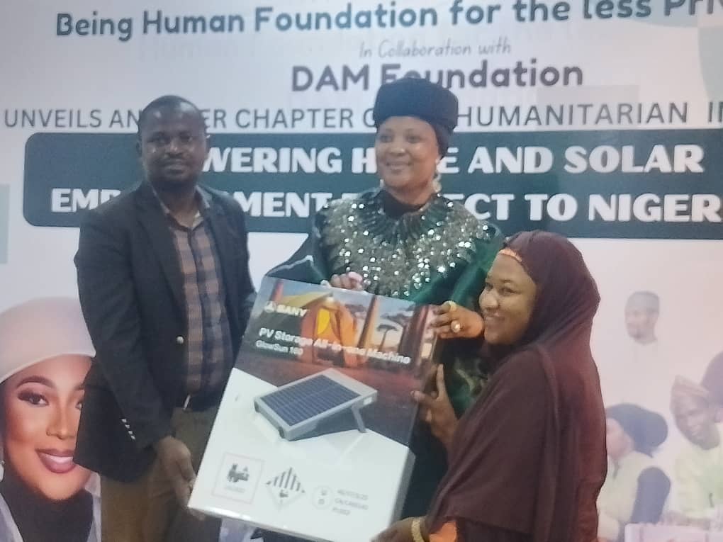 Founded by Hajia Khadijat Ibrahim, the Being Human Foundation for the Less Privileged focuses on empowering underprivileged Nigerians through humanitarian support and renewable energy initiatives.