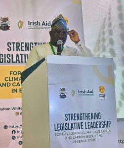 He spoke while declaring open a one-day training for members of the 10th Benue State House of Assembly on “Strengthening Legislative Leadership for Developing Climate Change Resilience and Carbon Budgeting”, organised in collaboration with International Alert, with support from Irish Aid, in Abuja, Nigeria’s capital.
