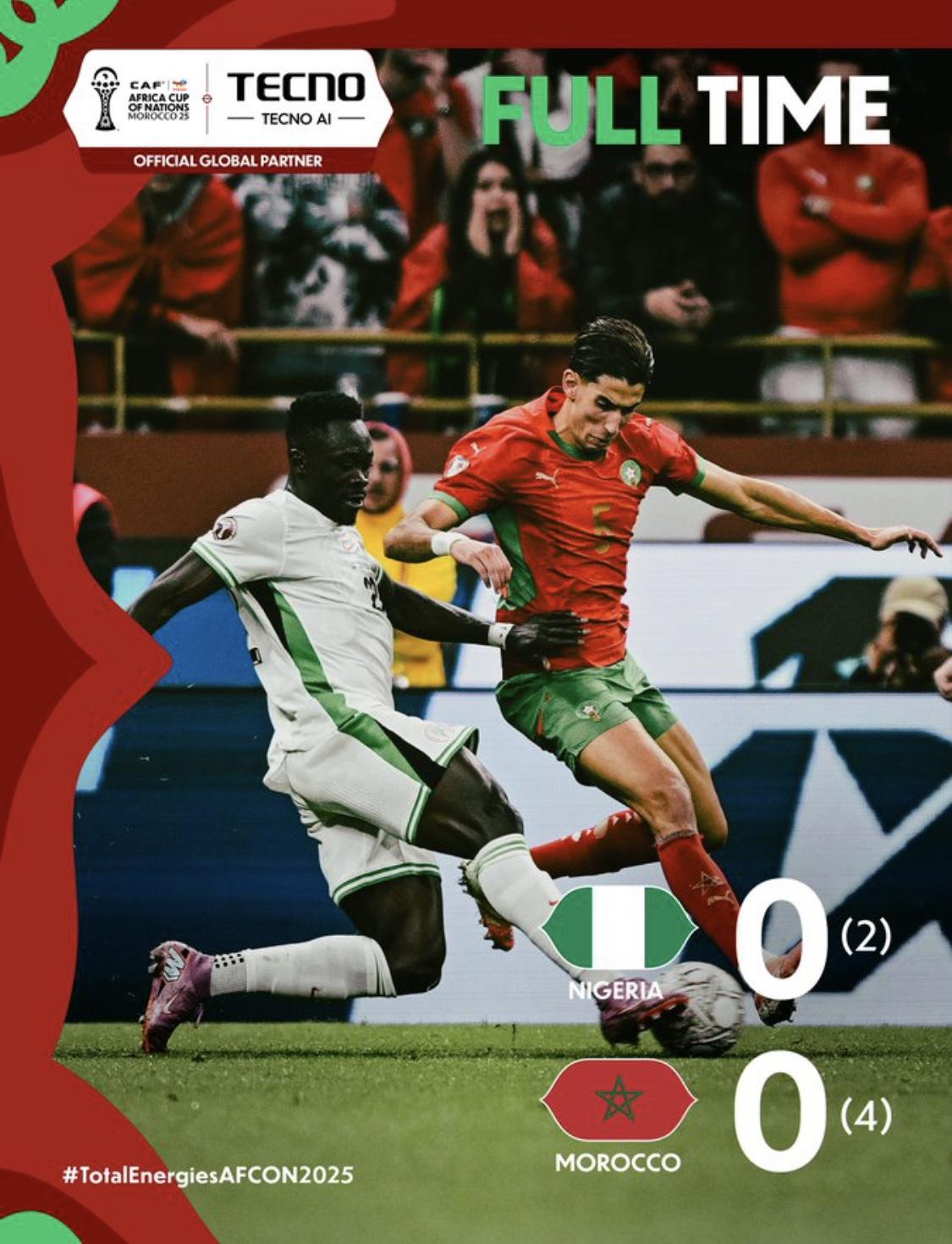 For Nigeria, hopes of reaching a second consecutive AFCON final were dashed, and the Super Eagles will now turn their attention to the third-place play-off against Egypt in Casablanca.