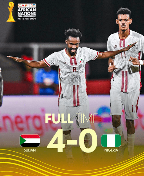 CHAN 2024: Sudan Eliminates Nigeria After 4-0 Spanking