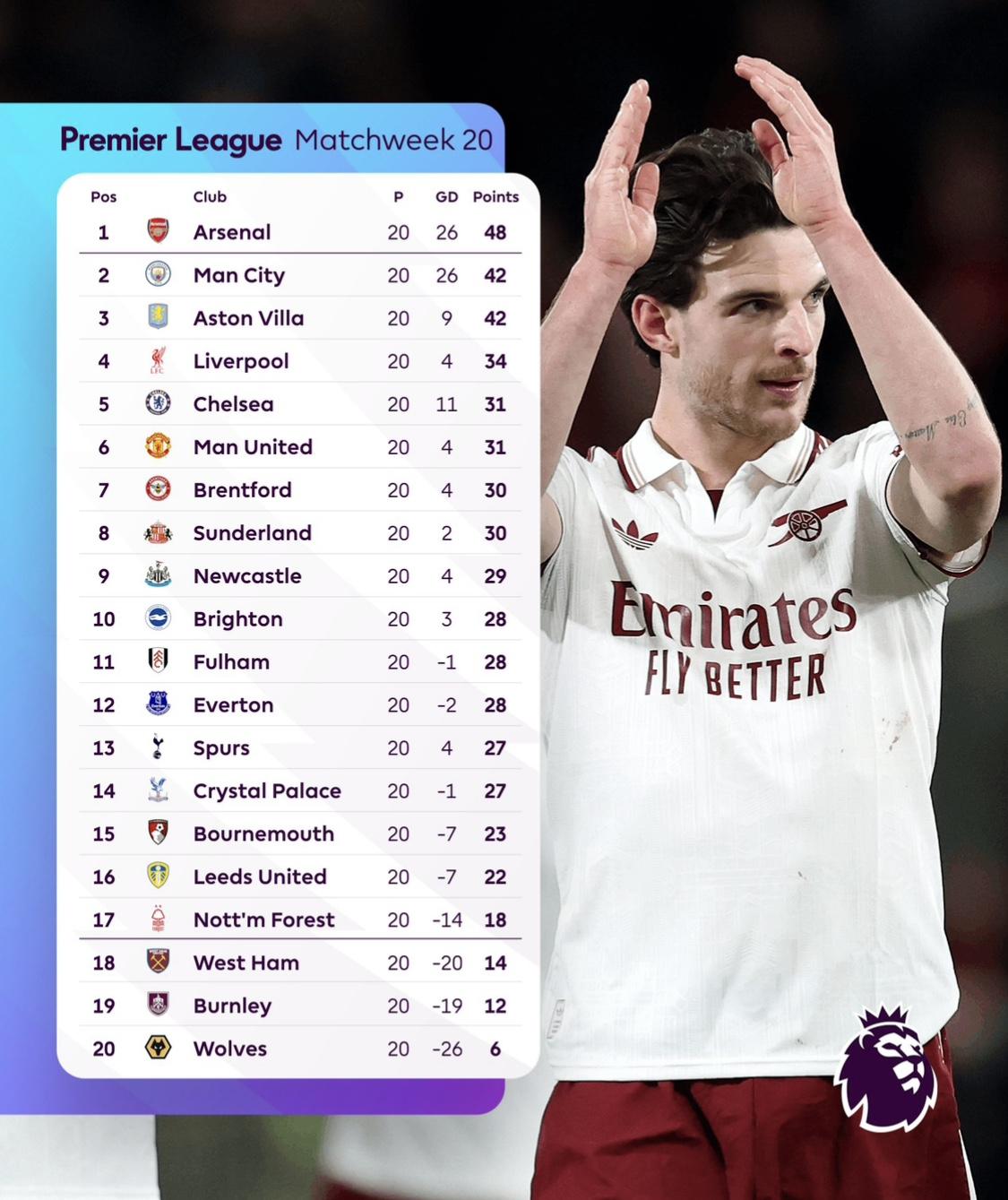 Chelsea, playing their first match after parting ways with manager Enzo Maresca earlier in the week, sits fifth on 31 points.