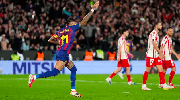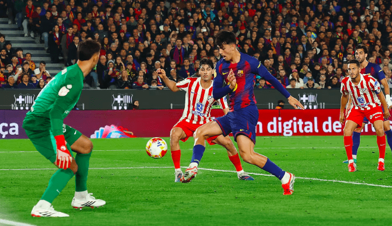 Atletico had a chance to ease the pressure but Nigerian Ademola Lookman headed narrowly wide from a Marcos Llorente cross, with Barcelona doubling their lead shortly after, when defender Marc Pubill fouled Pedri inside the box in first-half stoppage time.