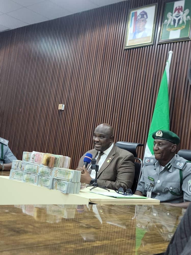 The seized currencies include $420,900, 3,946,500 West African CFA francs (XOF), 224,000 Central African CFA francs (XAF), and €5,825 — all amounting to a total value of ₦653,987,268.50.
