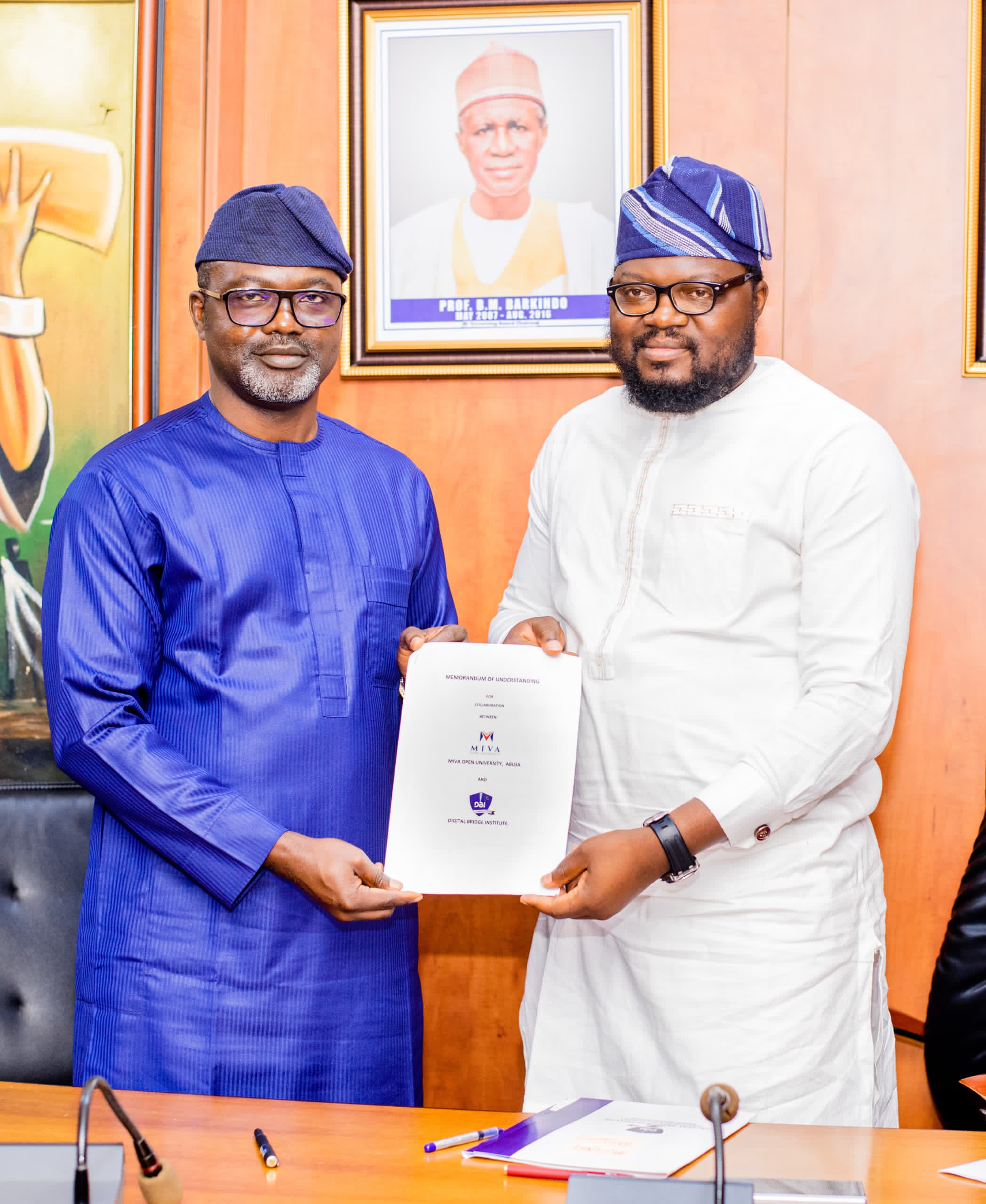 Signing on behalf of their institutions were the President/CEO of DBI, Mr. David Daser, and the Vice Chancellor of Miva Open University, Professor Tayo Arulogun.
