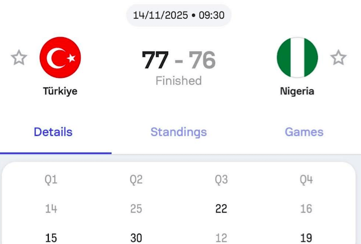 Turkey won the first quarter 15–14, before D’Tigress fought back in the second-quarter to but fell short as it finished 30-25. The hosts, however, regained momentum in the third quarter, outscoring Nigeria 22–12.