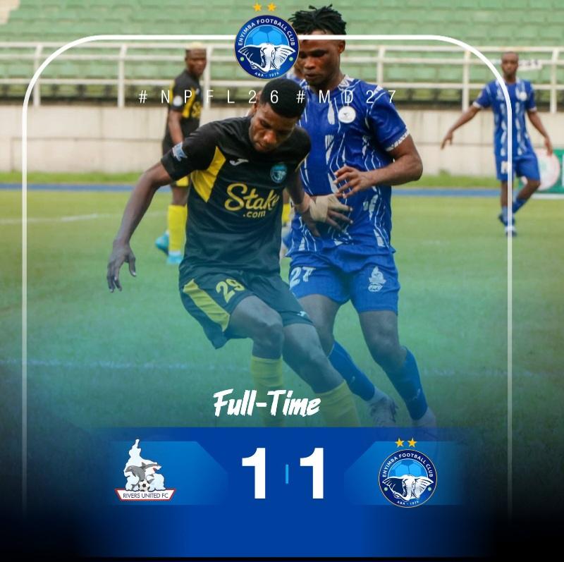 The highly anticipated clash between two of the Nigeria Premier Football League’s (NPFL) heavyweights ended in a stalemate, as Rivers United and Enyimba FC played out a 1-1 draw, at the Adokiye Amiesimaka Stadium in Port Harcourt, Rivers State.