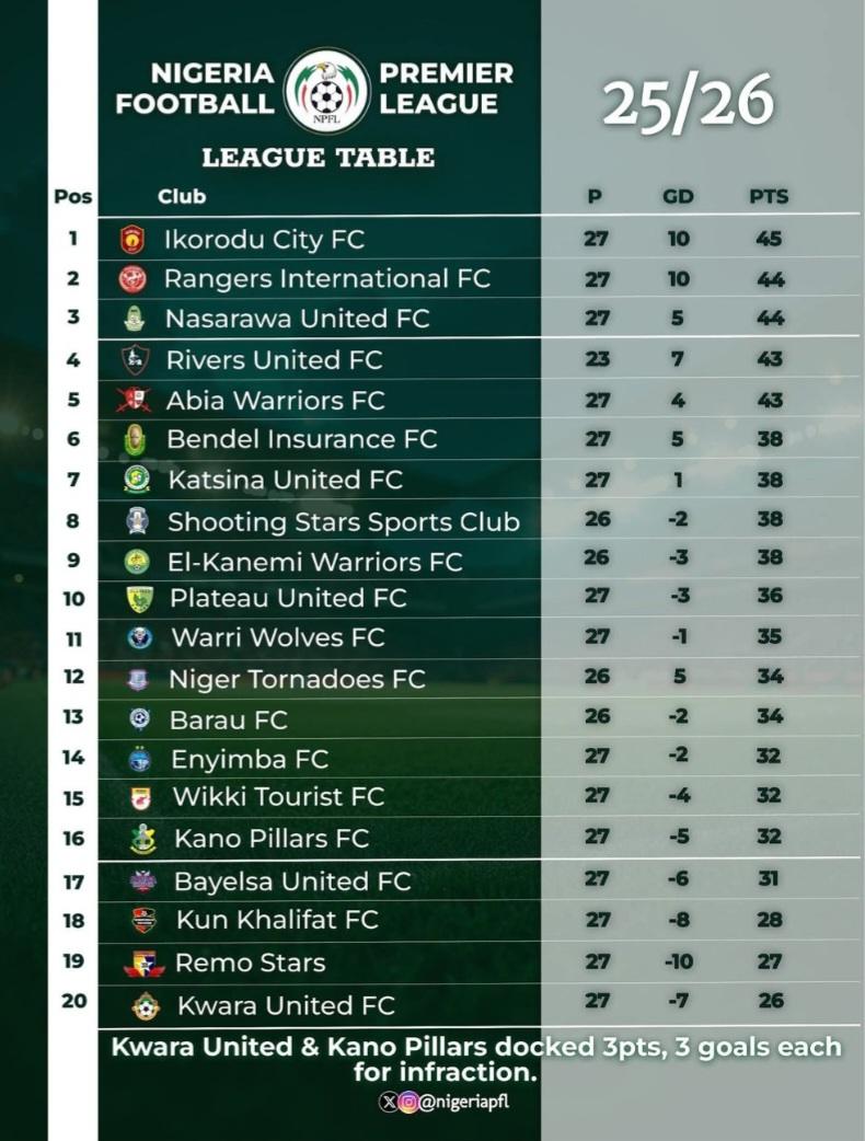 The result leaves both sides reflecting on missed opportunities in what was a high-octane encounter at the Adokiye Amiesimaka Stadium.