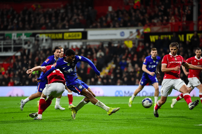 Wrexham’s Sam Smith had put the Championship side ahead in the 18th minute when he sprinted onto Callum Doyle’s long pass, took a touch and fired past Robert Sanchez.