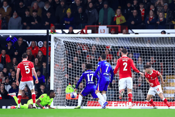 Chelsea equalised with a huge slice of luck when George Thomason’s attempt to clear Garnacho’s shot struck goalkeeper Arthur Okonkwo and rolled in.