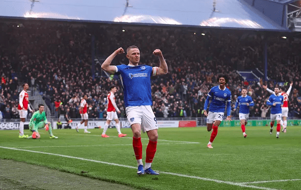 Portsmouth’s Colby Bishop raised the roof at Fratton Park by putting Portsmouth ahead after three minutes against Arsenal, firing in a rebound after a save by Kepa Arrizabalaga.