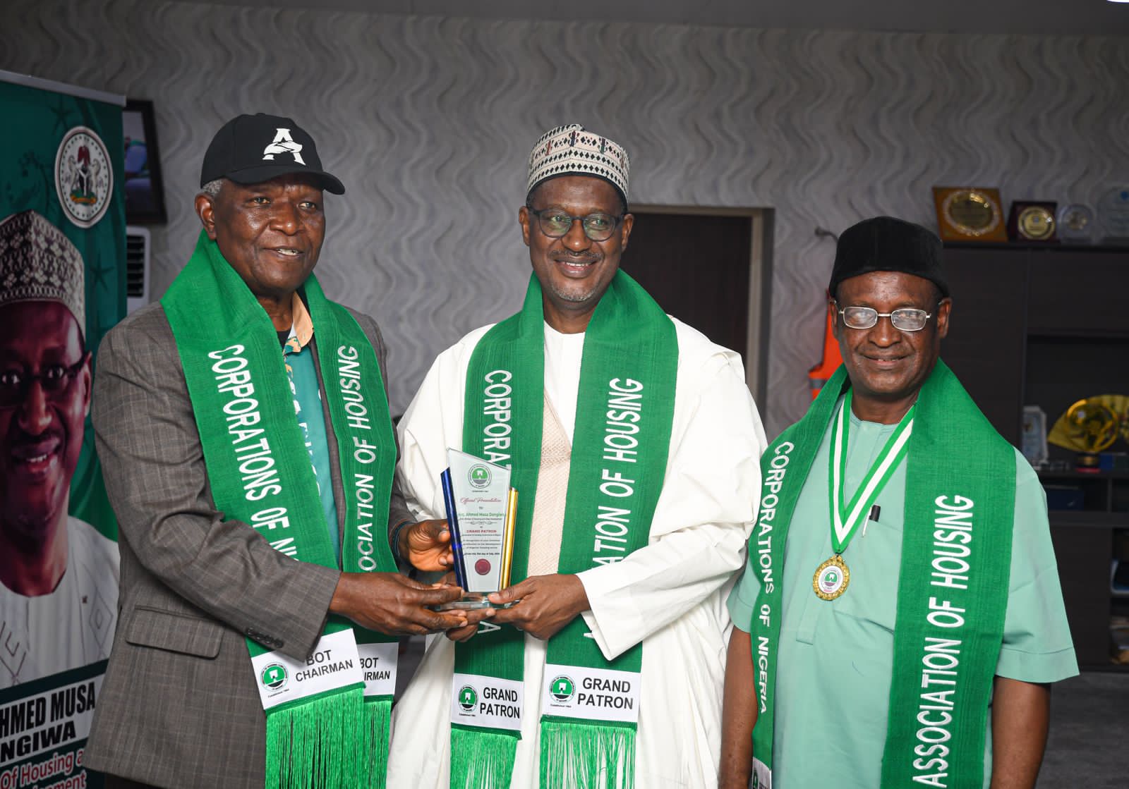 As a mark of recognition, Dangiwa was decorated as the Grand Patron of AHCN during the visit—an honour underscoring his contributions to Nigeria’s housing transformation.