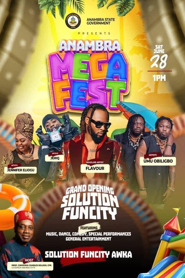 The Anambra State Commissioner for Tourism, Entertainment, and Culture, Comrade Don Onyenji, has announced that Nigerian music sensation Flavour N’abania will headline the grand opening of Solution Fun City on Saturday, June 28, 2025.