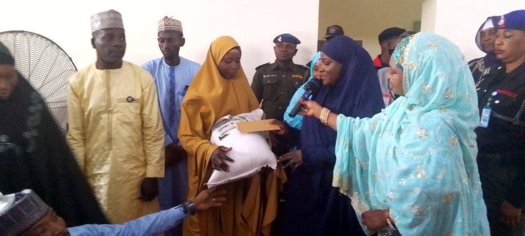 Dr. Fatima Aliyu distributed bags of rice, soya beans, millet, and cash assistance to improve the socio-economic wellbeing of families.