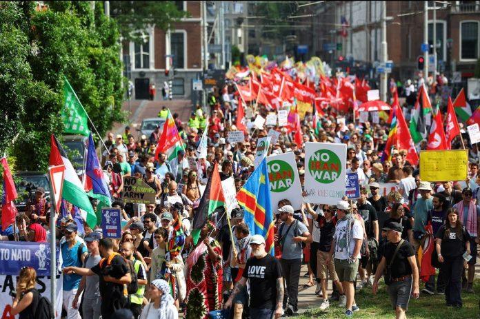 Protesters also opposed a proposed 5% defence spending target pushed by U.S. President Donald Trump and backed by NATO Secretary-General Mark Rutte, who hopes to secure consensus at the summit, beginning on Wednesday.