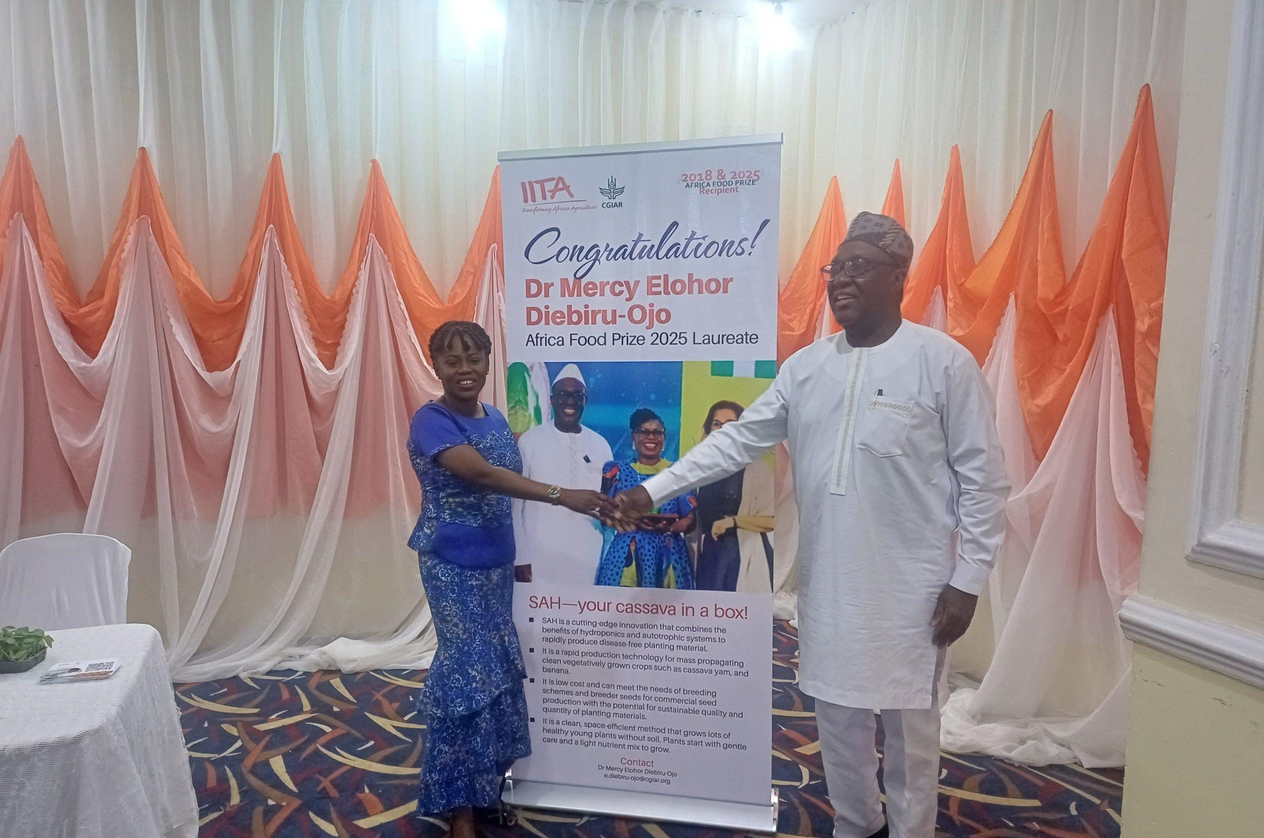 The International Institute of Tropical Agriculture (IITA) has honoured Nigerian researcher, Dr Mercy Elohor Diebiru-Ojo, who won the 2025 Africa Food Prize for her groundbreaking application of Semi-Autotrophic Hydroponics (SAH) technology in the multiplication of cassava and yam seedlings.