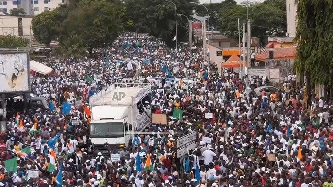 Thousands of Ivorians took to the streets in Abidjan, the capital of the West African nation, to protest against the exclusion of opposition leaders from the upcoming presidential election.