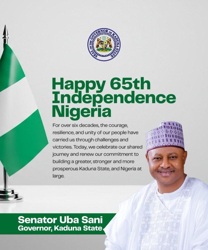 Governor Sani said this in a live broadcast in Kaduna to mark the nation’s 65th independence anniversary.
