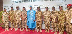 The Chief of Naval Staff, Vice Admiral Emmanuel Ogalla, led a high-ranking military delegation on a courtesy visit to Borno State Governor, Professor Babagana Umara Zulum, at the Government House in Maiduguri.