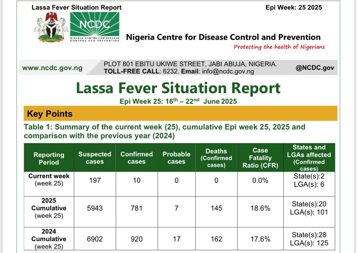 📢 Lassa Fever Update – Week 25, 2025