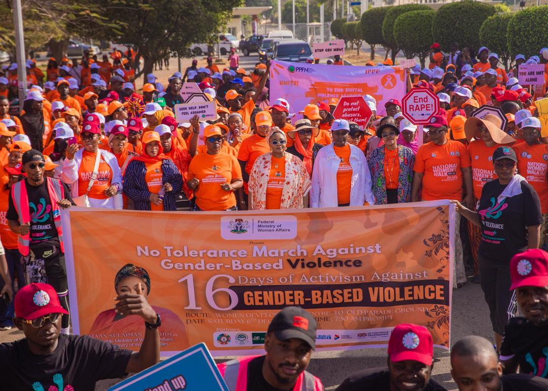 The Minister of Women Affairs and Social Development led a massive “No Tolerance Walk” in Abuja, drawing national figures, development partners, and civil society leaders who delivered strong messages against gender-based violence, particularly its fast-growing digital dimensions.