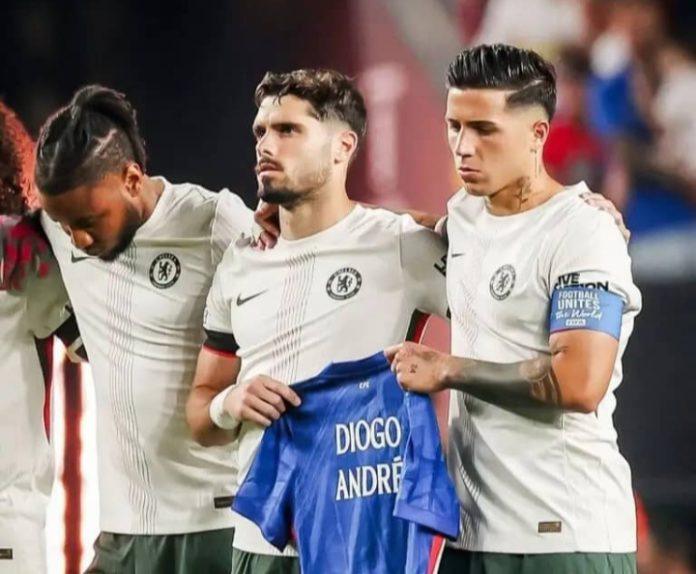 The duo of Portuguese right winger, Pedro Neto and Argentine midfielder Enzo Fernandez, held a Chelsea shirt bearing the names of Diogo Jota and brother, André Silva, who both died in the  motor accident  in the early hours of Thursday in Spain.