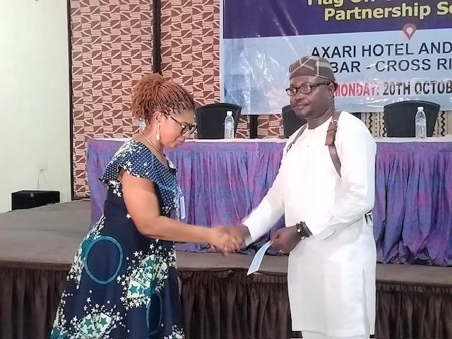 The chairman was represented by the Cross River State Director of NDCCITMA, Mrs. Bassey Ndem, who presented some of the beneficiaries with offer letters and cheques worth between ₦200 Thousand and ₦10 Million.