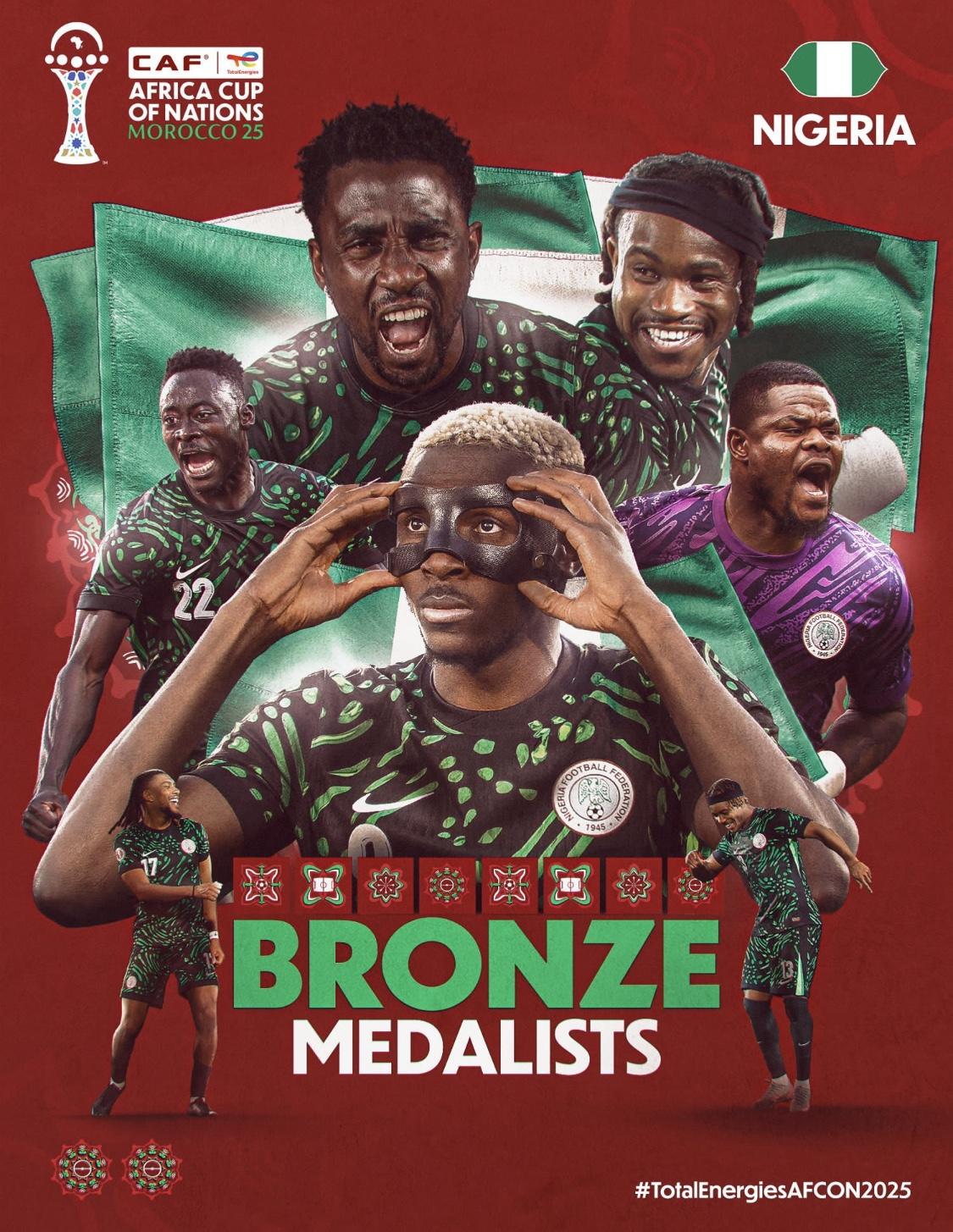 Goalkeeper Stanley Nwabali emerged hero for Nigeria as the Super Eagles secured the bronze medal at the 2025 Africa Cup of Nations (AFCON), following a 4–2 penalty shootout victory over Egypt after goalless draw in regulation time.