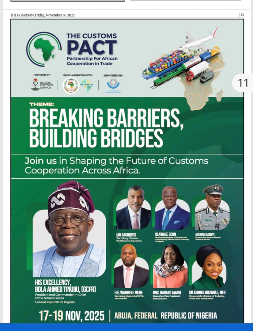 He also announced that Nigeria would host a major continental conference, from November 17–19, 2025, under the Customs PACT framework.
