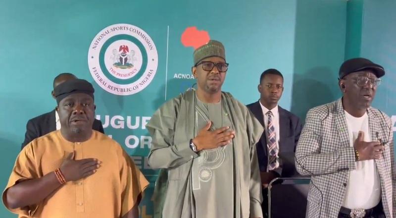 Chairman of the National Sports Commission, Shehu Dikko (C).