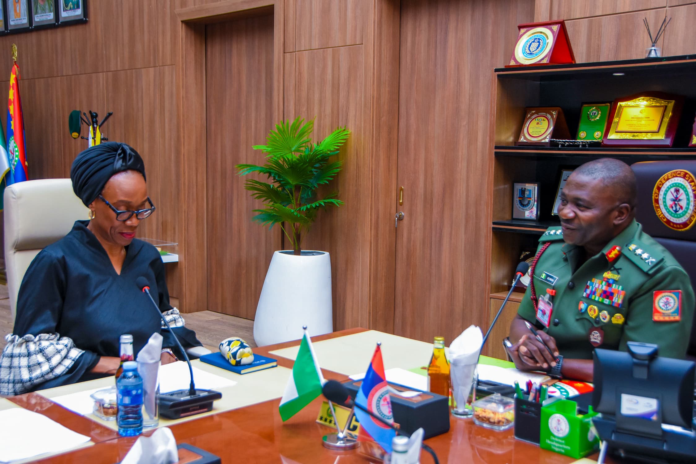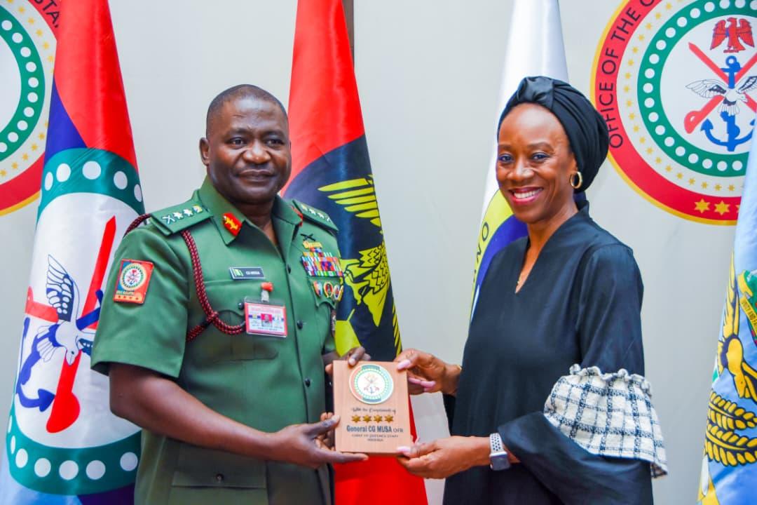 The Nigerian Chief of Defence Staff (CDS), General Christopher Musa and the Deputy Director General of Operations, International Organisation for Migration (IOM), Mrs. Ogechi Daniels, have met to discuss collaboration strategies to enhance peace building, migration management, and the fight against violent extremism across Nigeria.