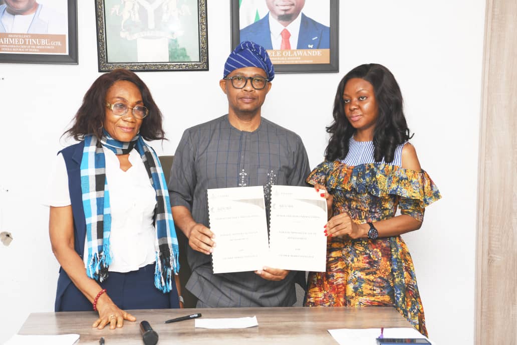 The signing ceremony took place in Abuja, Nigeria’s capital, with the Minister of Youth Development, Comrade Ayodele Olawande, represented by the Permanent Secretary of the Federal Ministry of Youth Development, Mr Olubunmi Olusanya.