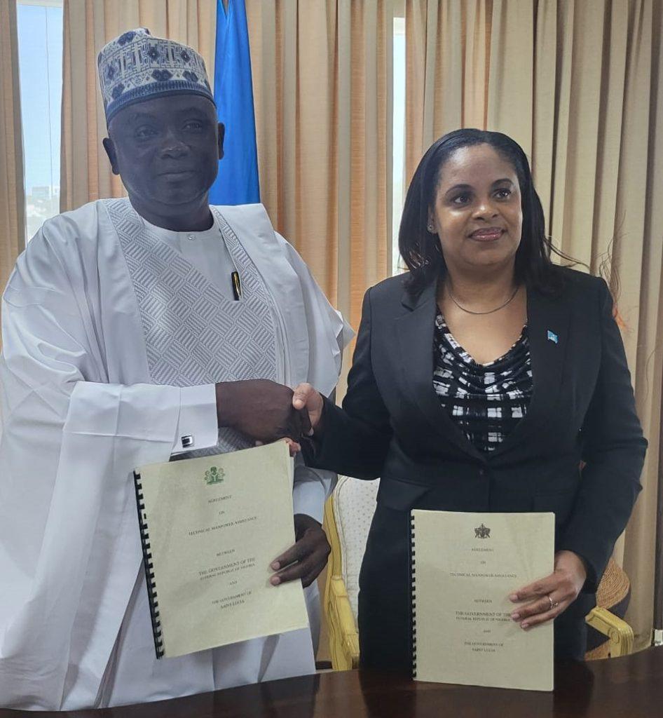 The Director-General of the Nigerian Technical Aid Corps, Yusuf Buba Yakub, signed on behalf of Nigeria while Janelle Modeste-Stephen, the Acting Permanent Secretary, Ministry of External Affairs, International Trade, Civil Aviation and Diaspora Affairs, signed on behalf of the eastern Caribbean Island on Wednesday at the Ministry of External Affairs, Castries, Saint Lucia.