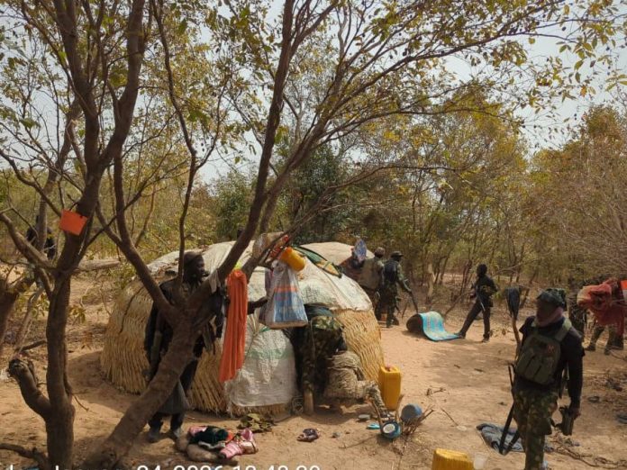 Following the initial engagement, troops carried out aggressive exploitation of adjoining forested areas to prevent regrouping or escape by the bandits. This included clearance operations within the Kankomi forest, where another contact was made at a suspected crossing point around Anguwan Sarki.