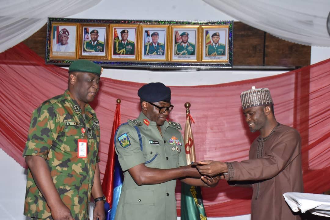 The officers decorated during the ceremony were Brigadier General Mansur Tijani, Deputy Chief of Staff Administration; Brigadier General Husaini Toro, Deputy Chief of Staff Operations; Brigadier General Abdulmalik Aboki Adamu, Commander 58 Signals Brigade; and Brigadier General David Chidozie Ibeh, Commander 8 Division Medical Services and Hospital.