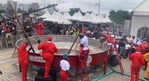Baci is attempting to cook 250 bags of rice in a massive 22,619-litre pot, a feat that drew food enthusiasts, influencers, well-wishers, local vendors and fans to the event grounds.