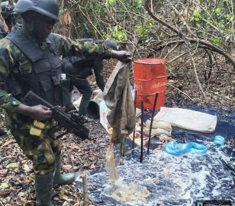 In a related operation, Forward Operating Base (FOB) Bonny, supported by Nigerian Navy air assets, uncovered and deactivated multiple illegal crude oil storage sites within the Allison Community in Bonny Local Government Area.