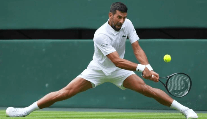 Seven-time Wimbledon champion Novak Djokovic roared his way to a rare century at the grasscourt Grand Slam on Saturday when he outclassed Serbian compatriot Miomir Kecmanovic 6-3 6-0 6-4 and reached the fourth round in his quest for a record 25th major.