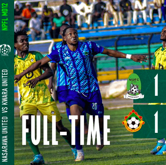 Kwara United on Sunday held table-toppers Nasarawa United to a 1–1 draw on Match Day 12 of the Nigeria Premier Football League (NPFL), at the Lafia City Stadium in Nasarawa State.
