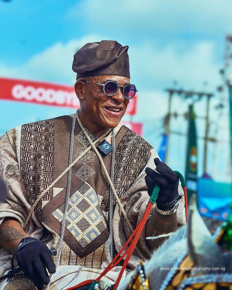 Dressed in a colourful agbada and matching accessories, Oreagba who went viral in 2024 for his stylish appearance at the same event, arrived again on horseback, which drew the attention of guests and social media users.