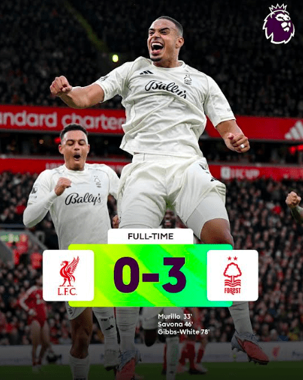 Goals by Murillo, Nicolo Savona and Morgan Gibbs-White gave Forest back-to-back league wins at Anfield for the first time in 62 years and condemned Liverpool to a sixth league defeat of the season.