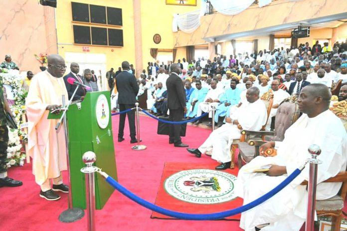 “Today, I am grateful that I am alive and to God be the glory to be the President of the Federal Republic of Nigeria and to come here to bid farewell to the mother of the community, and a humanitarian”.