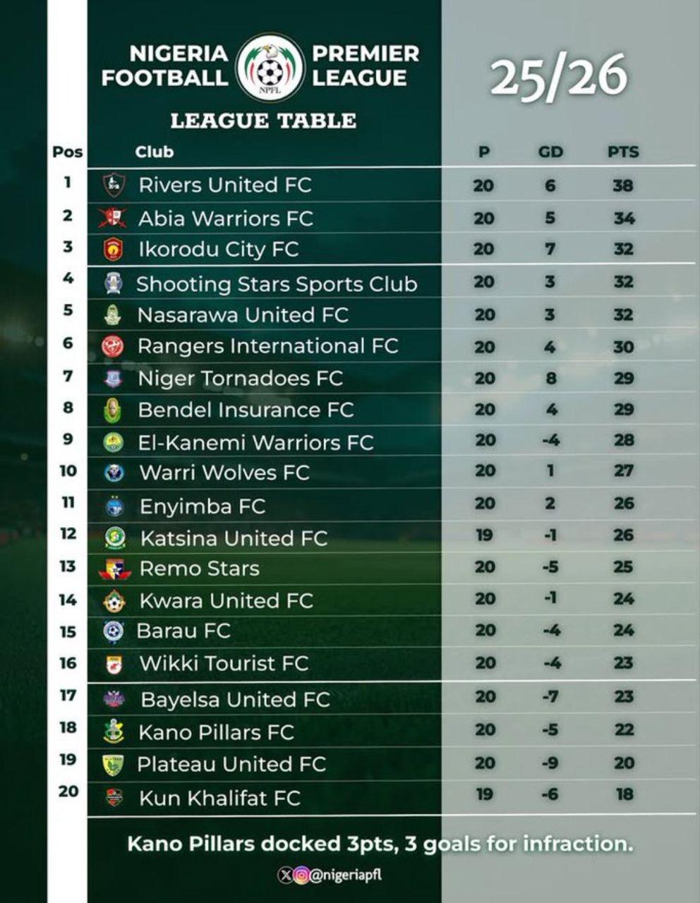 - Read more: Rivers United Tops NPFL After First Round