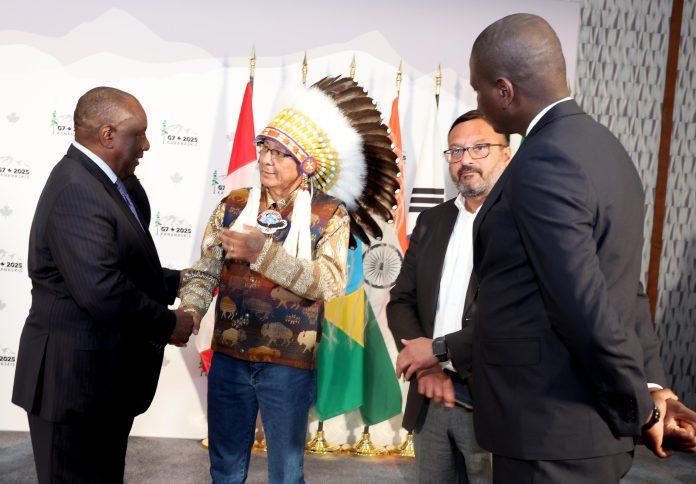 South African president Cyril Ramaphosa shook hands with a welcome delegation after arriving in Calgary for the Group of Seven summit.