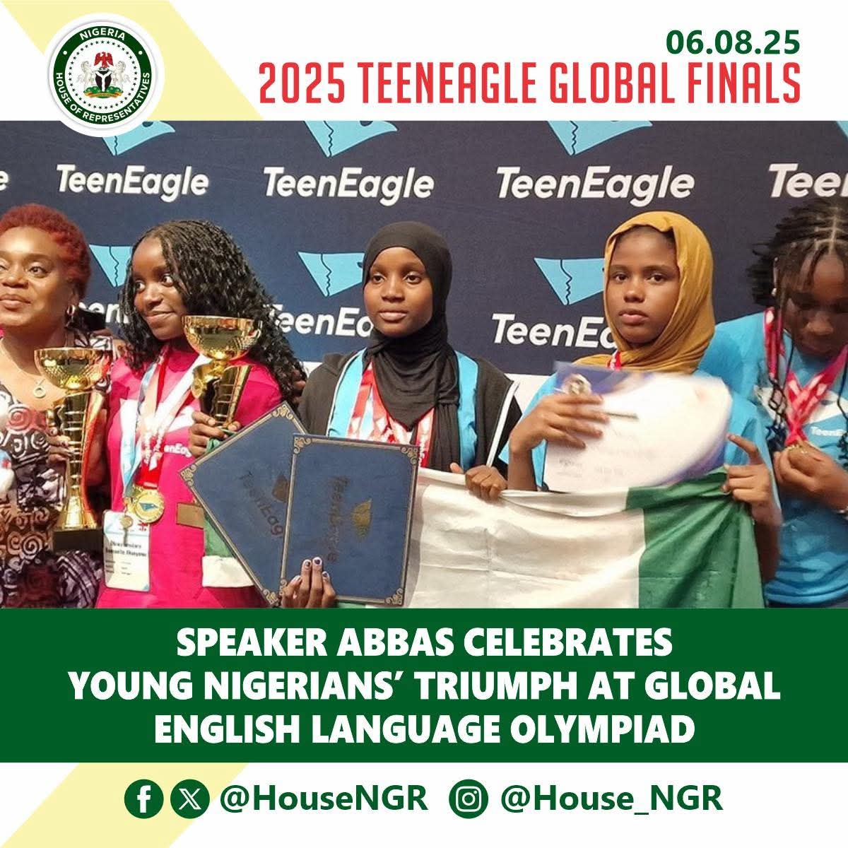 The Speaker of the House of Representatives Mr. Abbas Tajudeen has applauded Nafisa Abdullahi Aminu, Rukayya Muhammad Fema, and Hadiza Kashim Kalli, for emerging world champions in English language communication skills and debate at the 2025 TeenEagle Global competition in London, United Kingdom.
