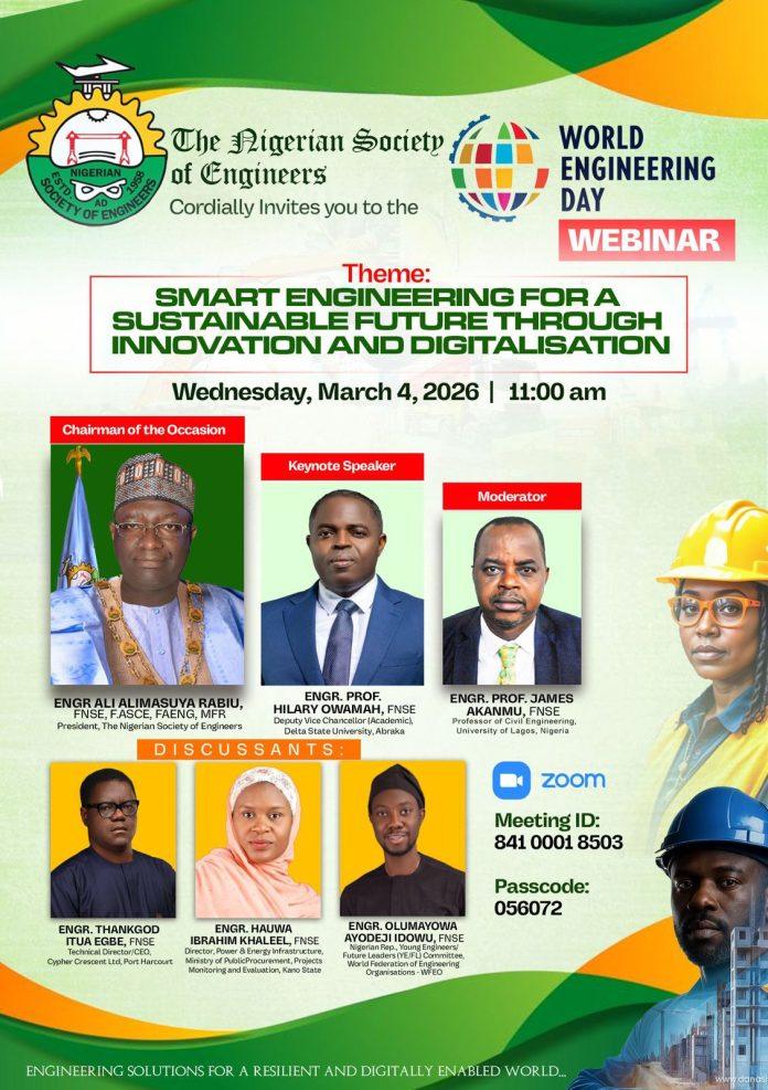 He made the appeal during a webinar organised by the Society to commemorate World Engineering Day for Sustainable Development. The webinar, themed “Smart Engineering for a Sustainable Future through Innovation and Digitalisation,” was described by the NSE President as timely and in tune with Nigeria’s urgent development priorities.