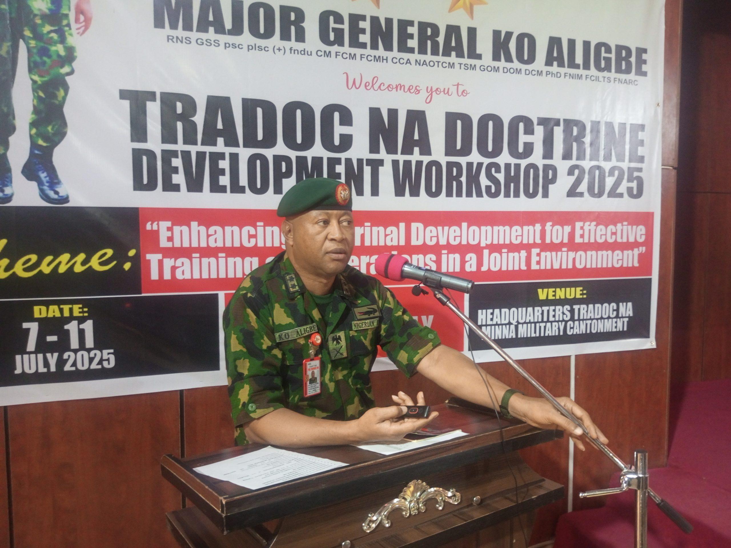 The Commander, Training and Doctrine Command (TRADOC) of the Nigerian Army, Major General Kevin Aligbe, has urged participants at the Doctrine Development Workshop 2025 to deepen their understanding of military doctrine, describing it as the foundation of how armed forces operate effectively across diverse operational environments.