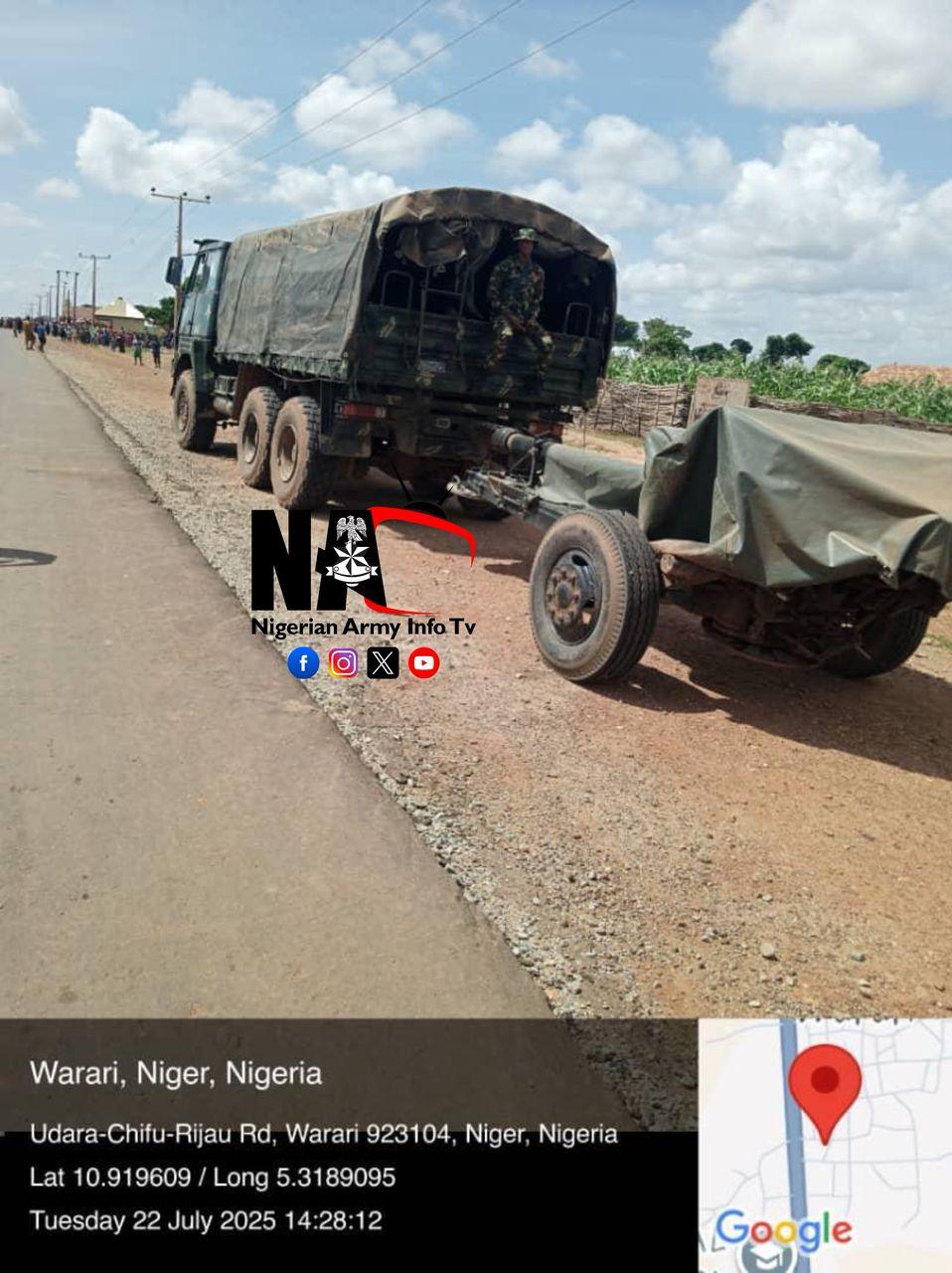 Troops of the Joint Task Force Operation FANSAN YAMMA (OPFY) have intercepted and neutralized a large group of terrorists advancing from the Baban Doka axis of Maru Local Government Area (LGA) in Zamfara State, towards Ragada and Warari communities in Rijau LGA of Niger State on 22 July 2025.