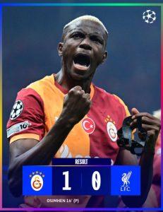 Super Eagles of Nigeria, striker Victor Osimhen scored from the spot as Galatasaray dealt Liverpool a stinging second successive defeat on a tough Champions League night in Istanbul on Tuesday.